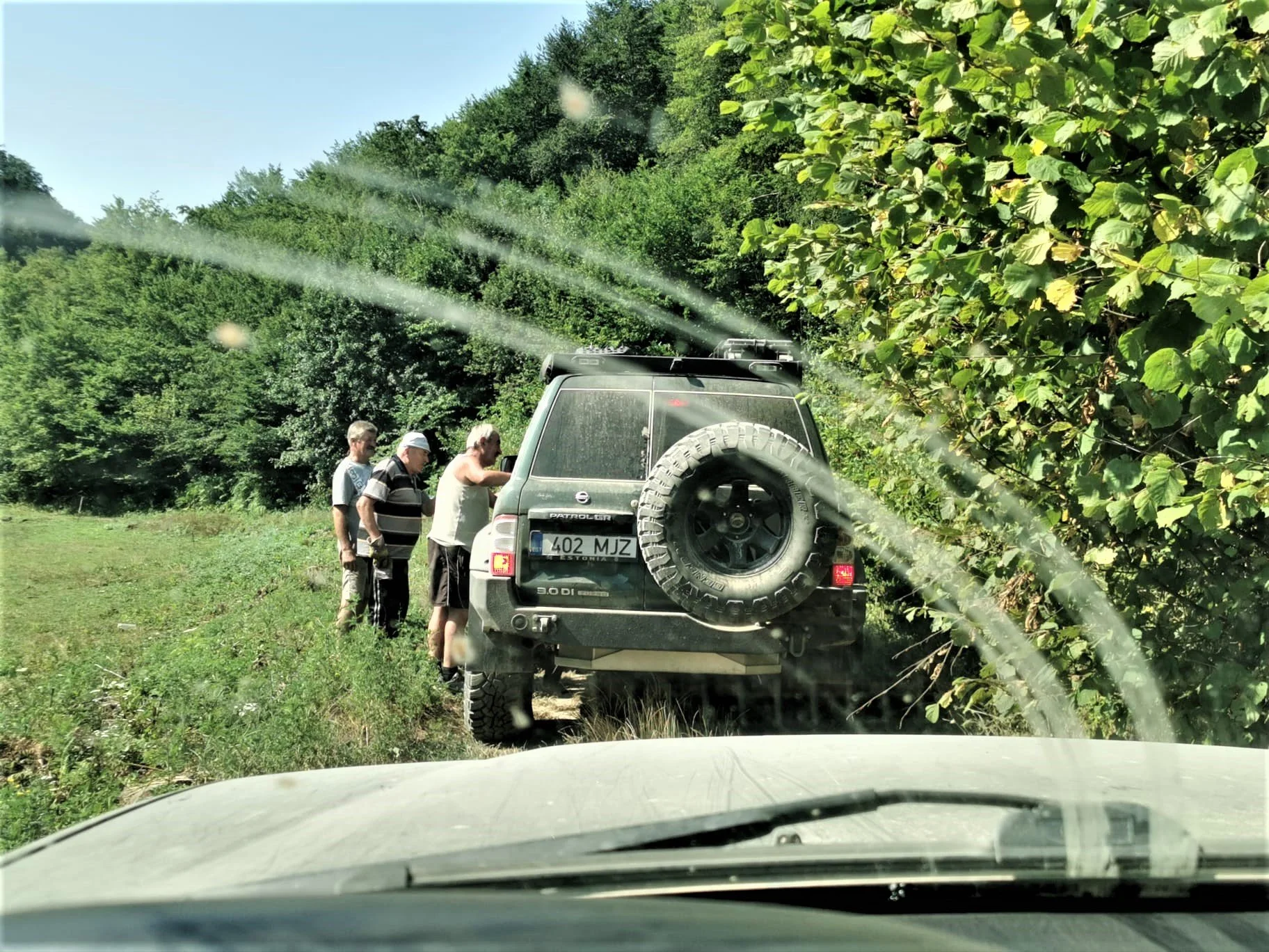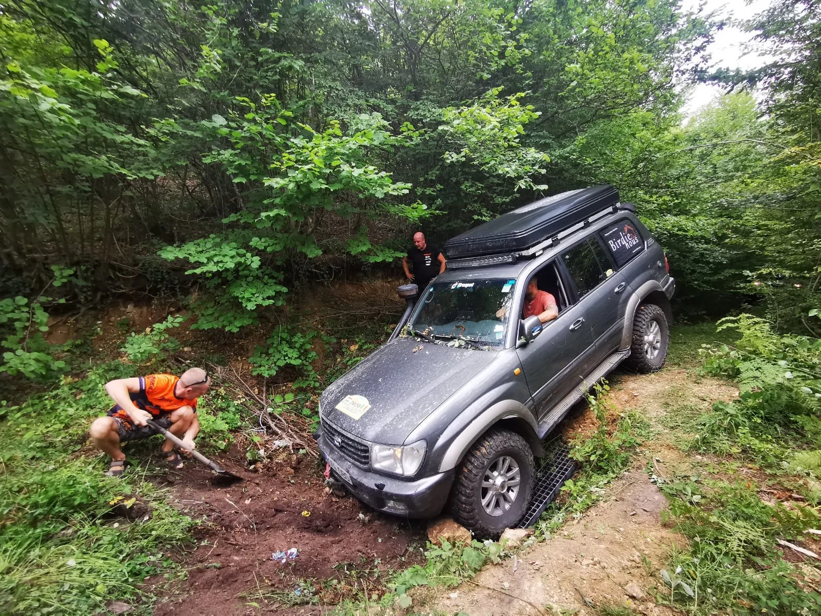 Kokkuvõttes me soovitud restorani ei jõudnud, valisime järgmise. Peale seda hankisime ehituspoest vajalikud asjad (nt needitangid snorkli kinnitamiseks) autode kosmeetilisteks parandusteks ja seejärel suundusime mäkke, täpsemalt Dinaari Alpidesse, Gornji Vakuf-Uskoplje kanti. Kulgesime mööda vägevat mägiteed kuniks oli aeg taaskord laagrisse sättida. Parkisime endid põneva laskumisega kenale enam-vähem tasasele lagendikule, päike paistis ja kõik oli hästi. Natukese ajapärast hakkasid meie ümber kogunema tumedad äikesepilved mis ähvardavalt välkusid ja mürisesid, tõusis ka tuul. Vaatasime mäel kulgevat rada ja nägime tulesid, Siim vaatas monokliga kaugusesse ja nägi, et tegu on Patroliga Y60 ja et ta liigub meie poole, järsaku juures kust meie laagrisse sai, jäi auto seisma. Viipasime kaugelt, et tulgu meie juurde aga läks ennem vähemalt 10 minutit kui nad otsustasid, et ikka usaldavad meid ja tulevad. Tegu oli Tšehhist pärist Lucie ja Jonnyga kes kahekesi oma udupeenelt siledas, renoveeritud Patrolis BH ringi trippisid. Jonny oli saanud Patroli oma isalt kes oli selle eelmine omanik ja nad renoveerisid auto täielikult neli aastat tagasi.