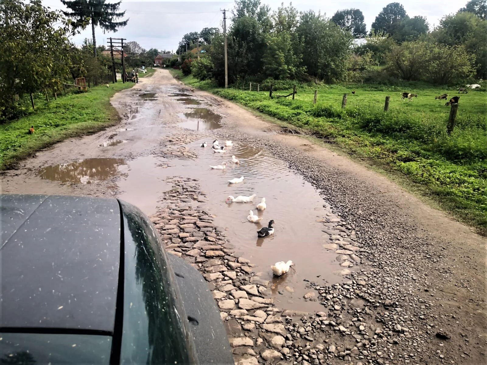 Neljandal päeval offroadisime metsast välja, järgmise metsa poole, ikka läbi nostalgiliste külade. Rännakuga oleme jõudnud juba Žõtomõri oblastisse. Kes iganes plaanib Ukrainat autoga külastada, eriti tavalise sõiduautoga, siis peab arvestama, et väljaspool magistraale võivad teed kõvasti üllatada, ning km läbimise aeg võib kujuneda harjumuspärasest pikemaks. Külast-külla viib siin tihti ikkagi metsatee, liivatee, vana kivitee või 30 aastat tagasi maha pandud asfalttee. Kuskilt külavahelt suundusime vaatama ühte vana/hüljatud kaevandust, mida ümbritses tammemets. Kaevanduse äärel ja tammemetsa veerel pidasime hilise lõuna, kaarti uurides ja ööseks laagrikohta välja vaadates leidsime koha mida nimetatakse kivikülaks või Ukraina Stonehenge-ks. See asub paksu-paksu metsa sees ja sinna me ka suundusime. Mööda väga kõrvalisi metsaradasid jõudsime lõpuks kohale, üllatuseks leidsime eest kaks väikebussi. Läksime ka ise kivikülla kondama.